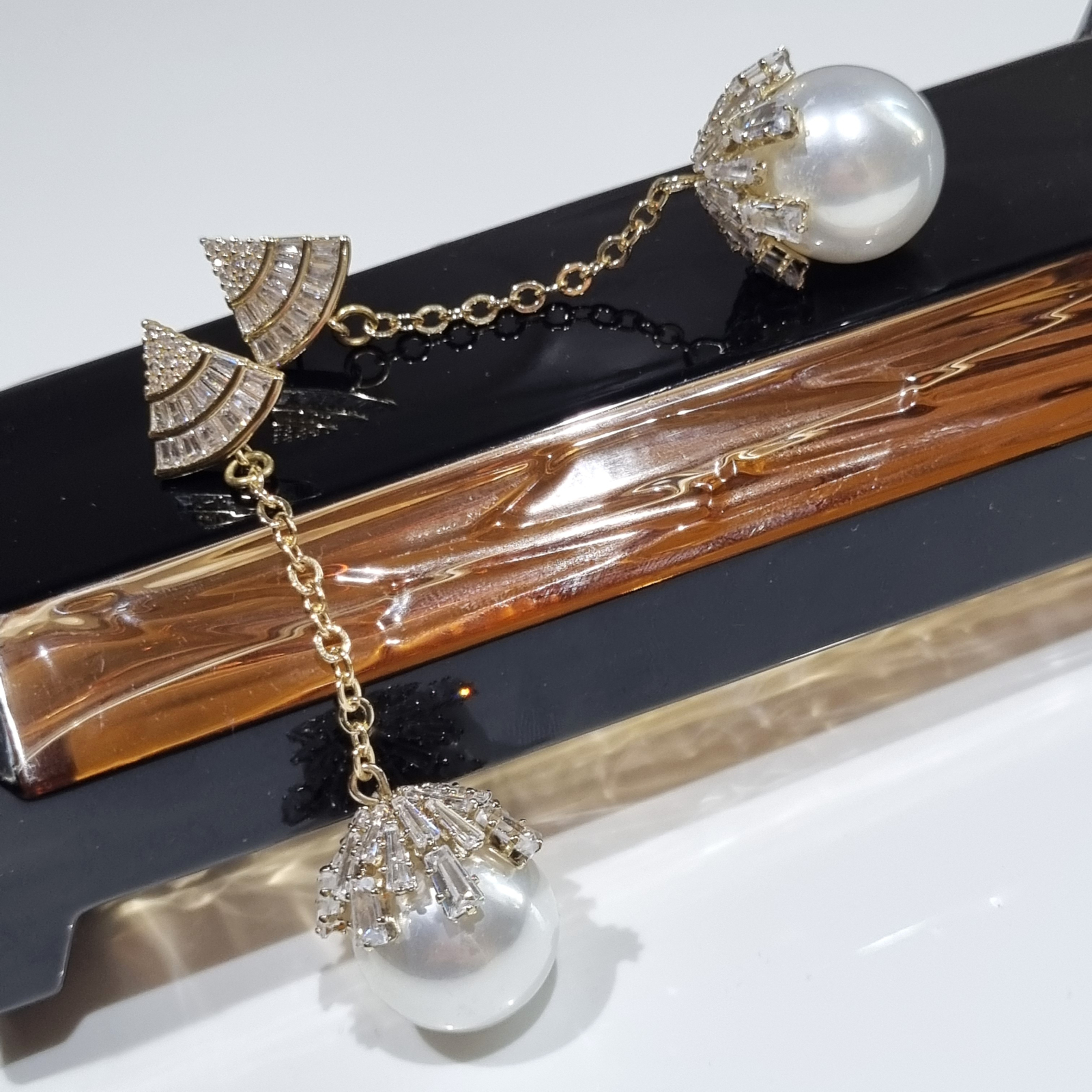 • Perle de sticla in montura cu zirconia cubica
