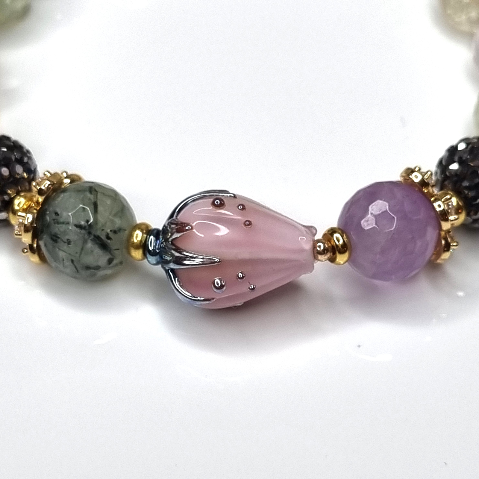 • element decorativ boboc de floare realizat manual, prin tehnica Lampwork
